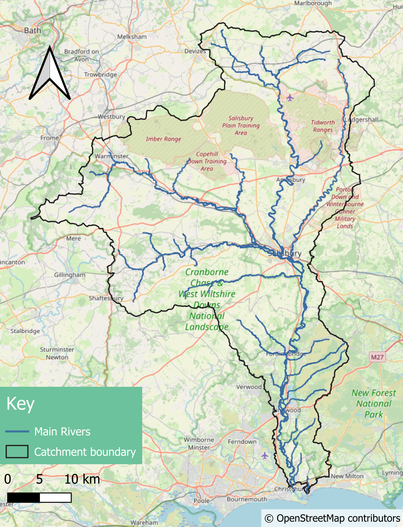 The Bristol Avon spans 75 miles through the south-west of England. The catchment has a population of approximately 1.5 million people. The river rises in South Gloucestershire on the southern edge of the Cotswold hills, flowing east through Wiltshire and draining through the West of England into the Severn Estuary at Avonmouth.